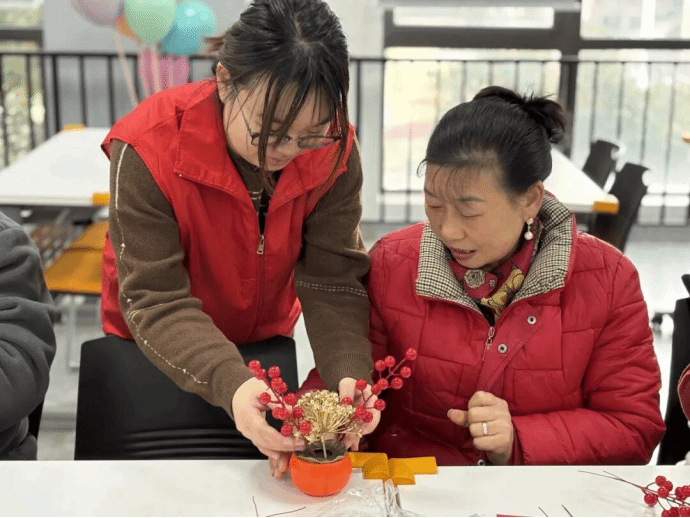 活动伊始,我带着几分忐忑与期待加入队伍。看着老人们眼中对制作手工树的向往,我立刻调整状态,主动上前协助。从整理材料、分发花材,到耐心陪伴老人完成插花步骤,每一个环节都充满了温情。老人们的动作或许有些迟缓,对花材的搭配也需要反复斟酌,但他们的专注与认真却深深打动了我。有位老人在搭配花材时,反复调整位置,只为让每一朵花都呈现出最好的姿态,这份对细节的执着,让我明白手工制作的意义不仅在于成品,更在于过程中的用心。