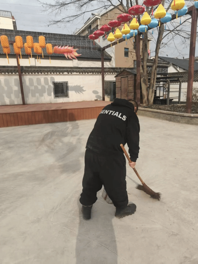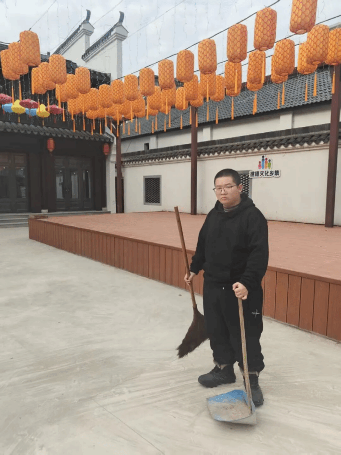 这一次我返家乡参与的志愿者服务是帮助社区清洁小区卫生,主要是对小区的弄堂口和街道广场以及倒垃圾处进行清理。起初我以为这只是简单的体力劳动,真正动手才发现,每一处都藏着不易。弄堂口狭窄逼仄,陈年油污和顽固污渍黏在地面,普通扫帚根本扫不干净,只能蹲下身用钢丝球一点点擦拭;街道广场上,落叶与烟头、塑料袋混杂,被风卷到角落和缝隙里,弯腰捡拾久了,腰腹阵阵发酸;最棘手的是垃圾投放点,异味刺鼻不说,散落的厨余垃圾和废弃包装缠在一起,清理时既要小心不弄脏衣物,又要确保分类归置,稍不留意就会遗漏。