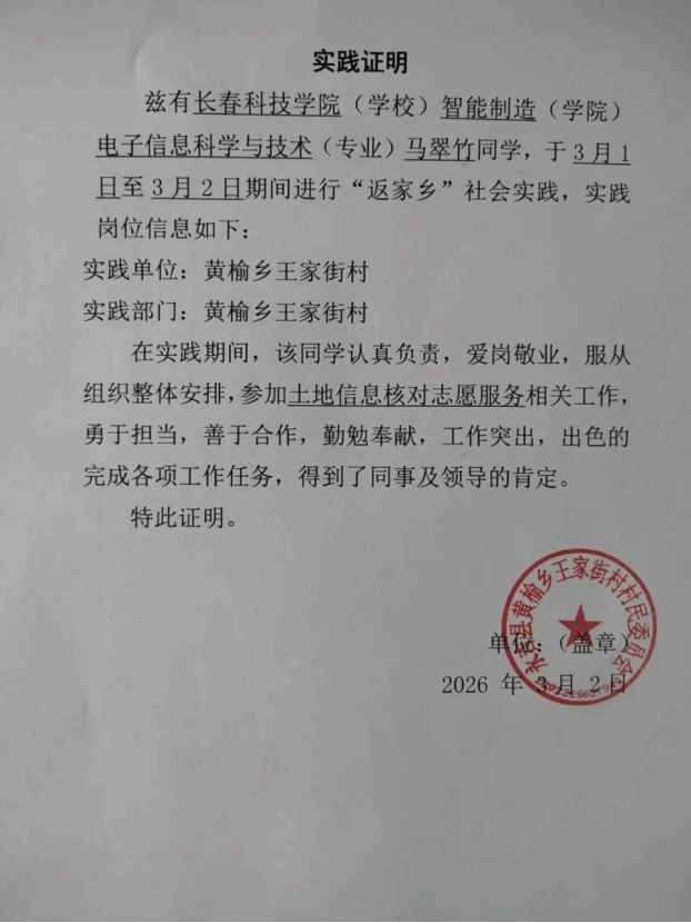 情暖寒岁添暖意,青春践行显担当!为扎根基层沃土,书写青春华章,智能制造学院积极响应号召,组织学子参与2026年寒假“返家乡”社会实践活动,躬身实践、传递温情、不负韶华。