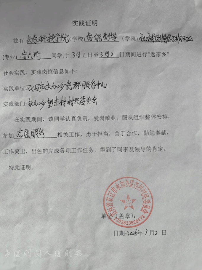 情暖寒岁添暖意,青春践行显担当!为扎根基层沃土,书写青春华章,智能制造学院积极响应号召,组织学子参与2026年寒假“返家乡”社会实践活动,躬身实践、传递温情、不负韶华。