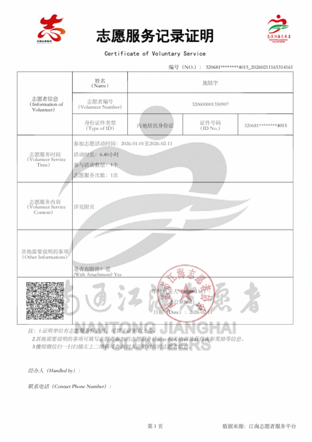 在2026年2月,我以志愿者的身份参与了启东经济开发区善成社区新时代文明实践站组织的两次志愿服务活动,分别是以健身操为主题的社区健身活动和国家安全知识科普宣传。这两次活动虽然内容不同,但都让我深刻体会到志愿服务的意义与价值。